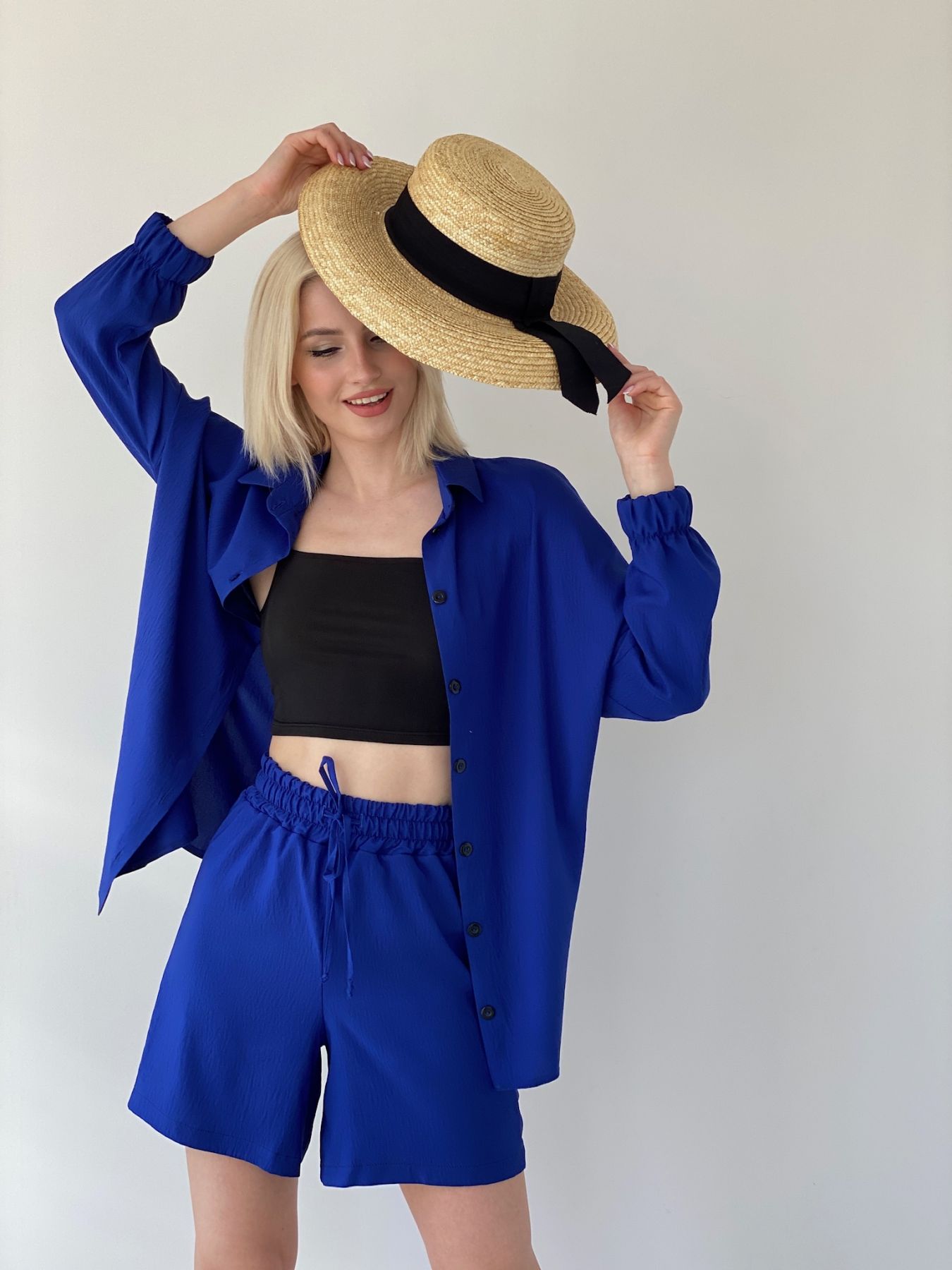 6460 Костюм в пижамном стиле с шортами "кобальт"