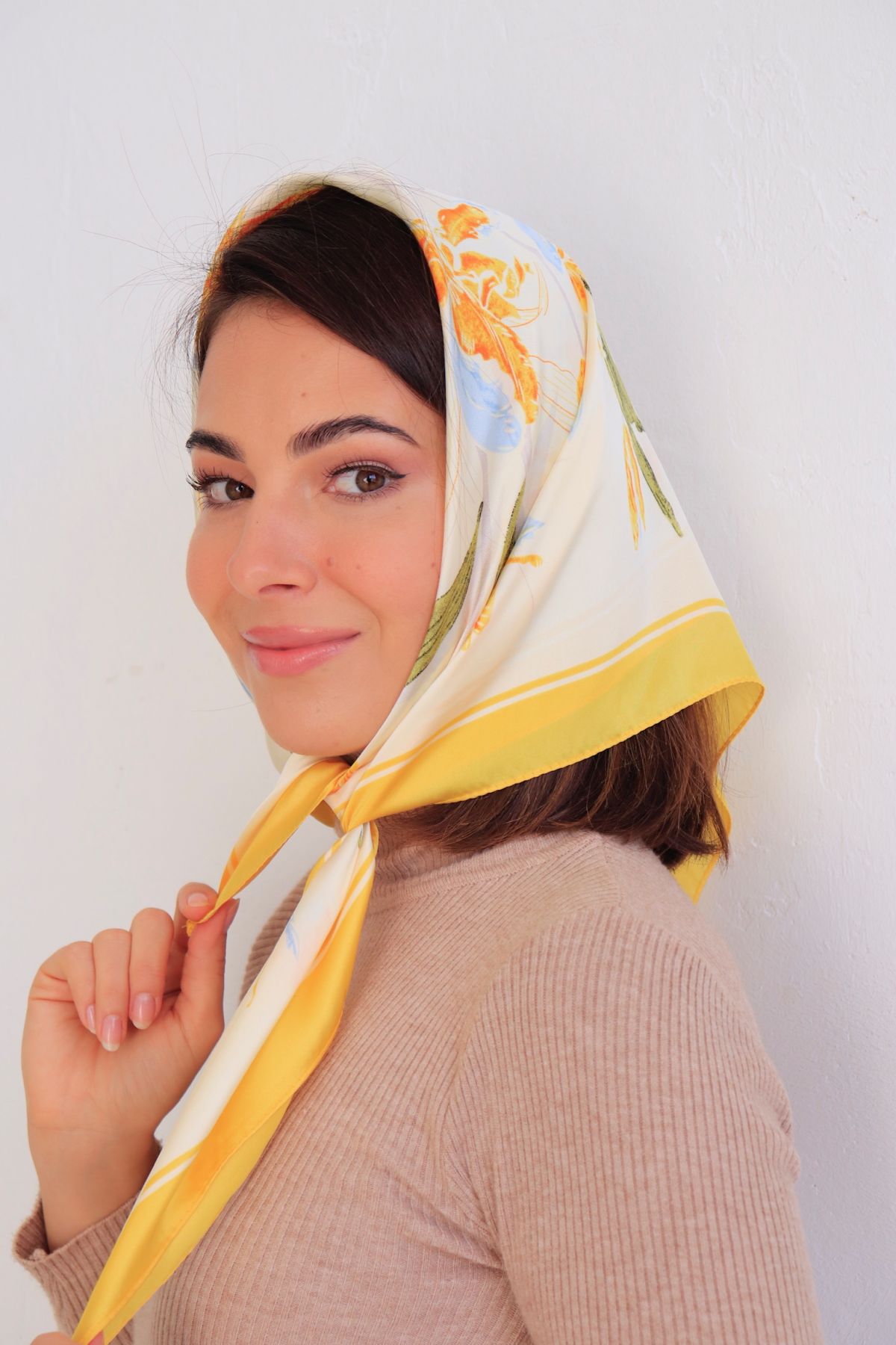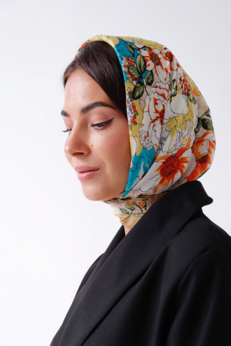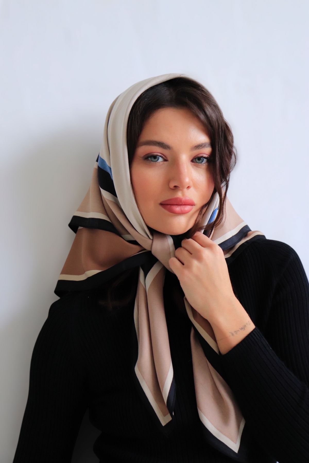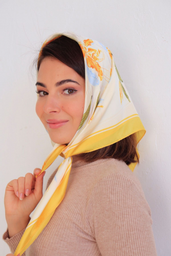 6174 Комплект из топа с воланом и юбки-миди с кремово-синим принтом