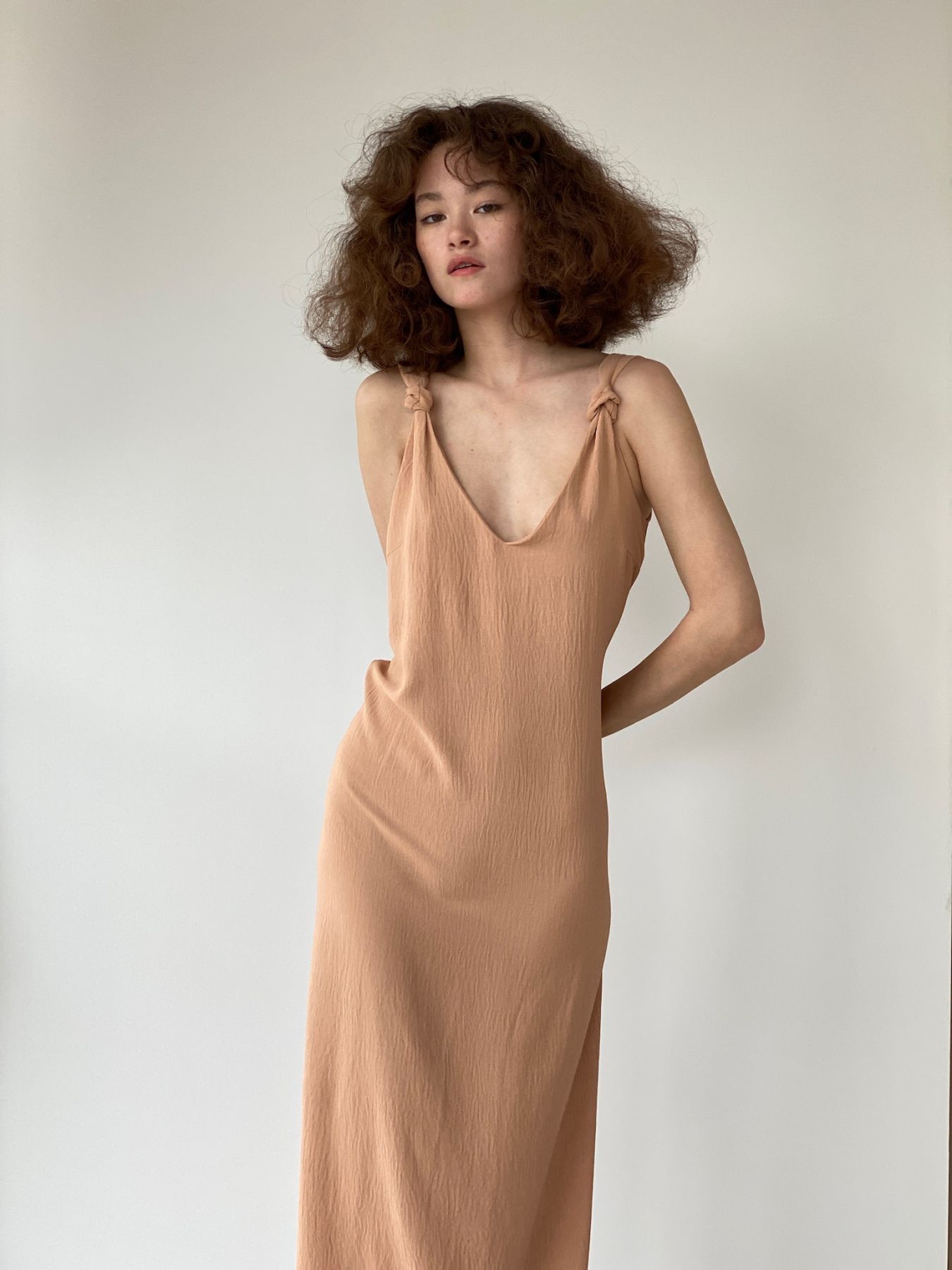 6333 Платье-макси с узлами на бретелях песочное