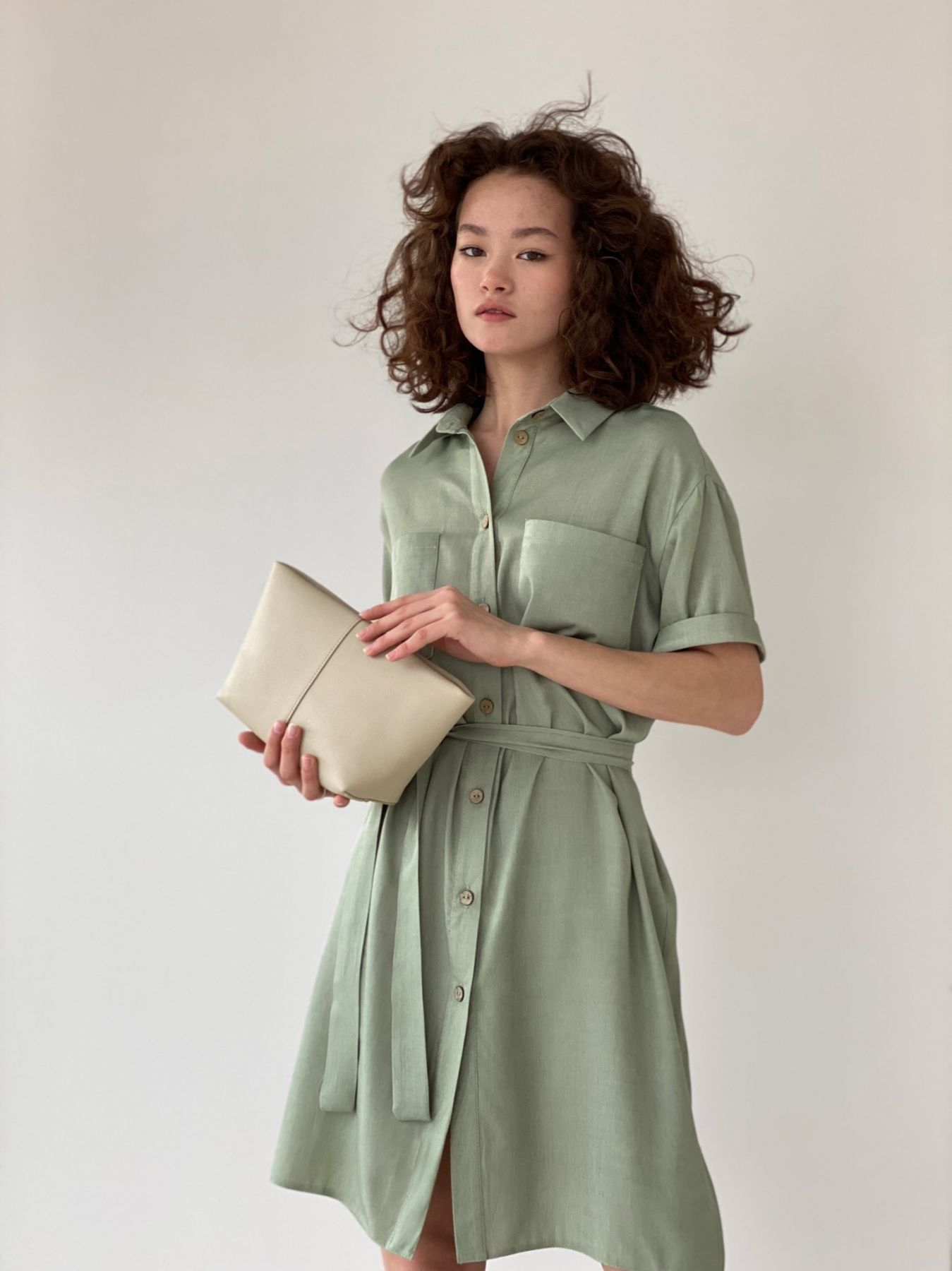 6198 Платье-рубашка из лиоцелла в пыльном зелёном