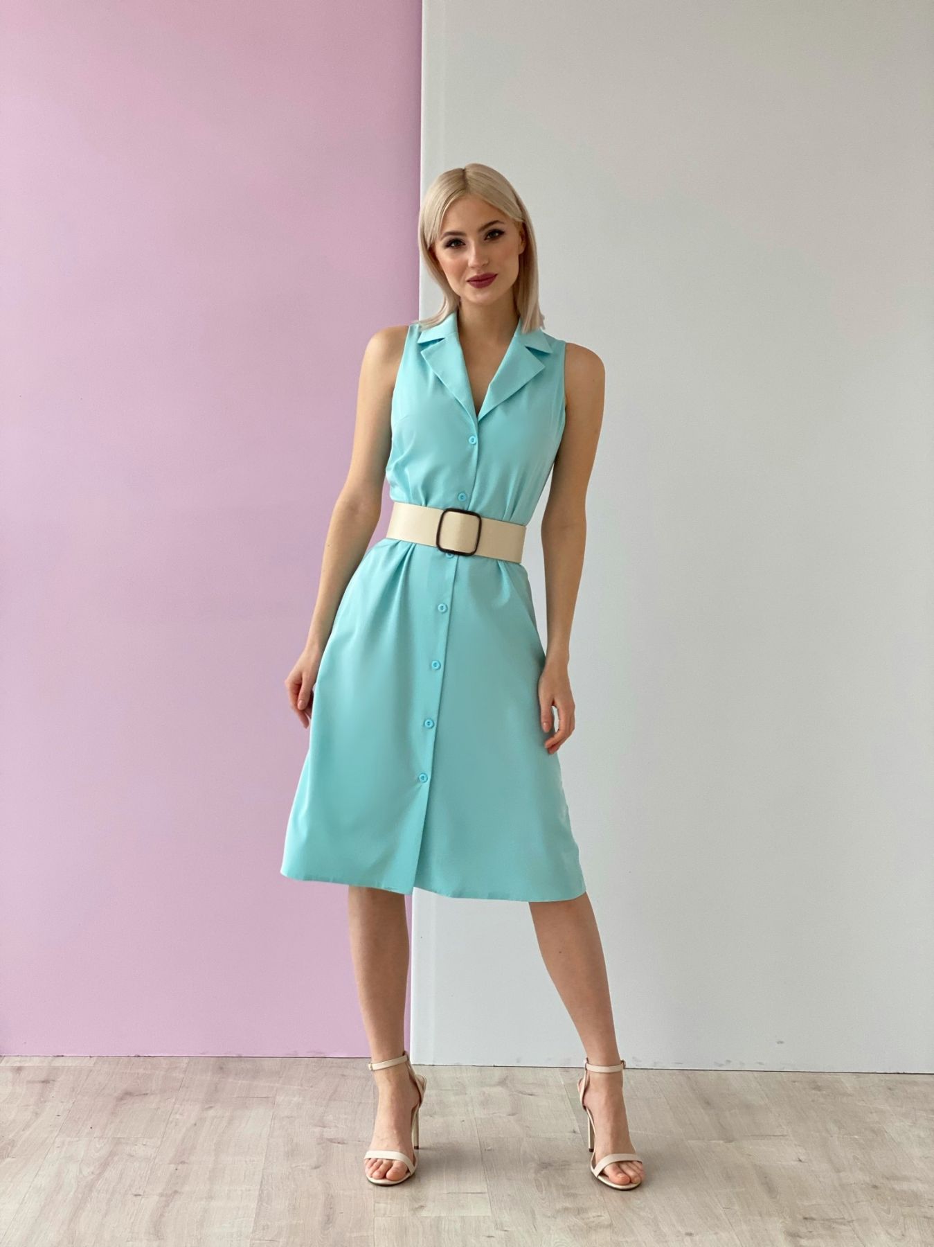 5325 Платье-американка с английским воротником голубое