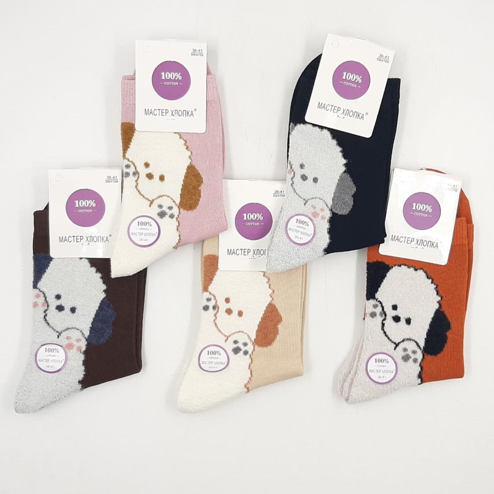 Упаковка из 10 шт МАСТЕР ХЛОПКА Носки женские Высокие Хлопок (собачка на пяточке) (36-41) (DB4709) К10