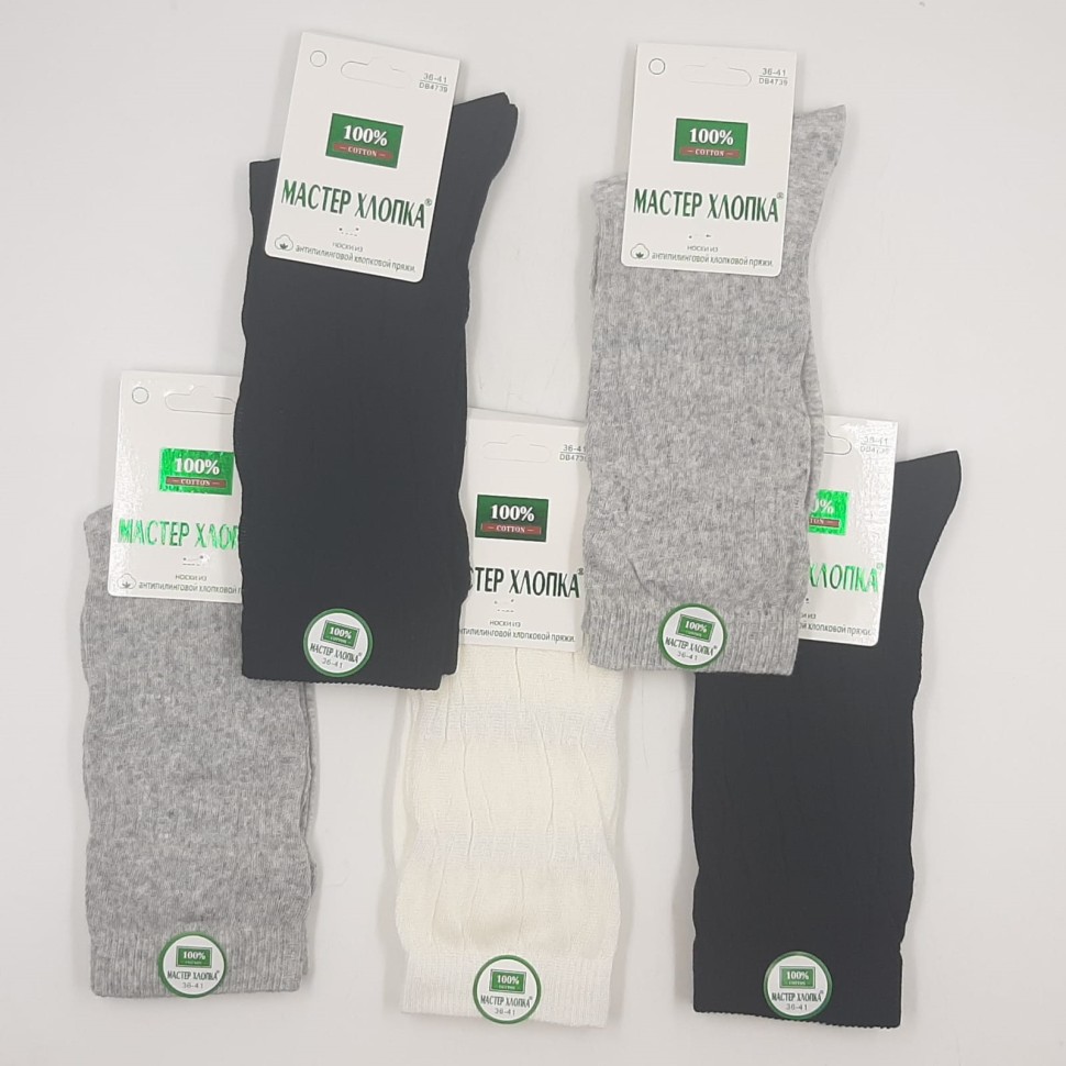 Упаковка из 10 шт МАСТЕР ХЛОПКА Носки женские Очень Высокие Хлопок Антипилинговая Пряжа Резинка Лапша (черные, белые, серые) (36-41) (DB4739) К10
