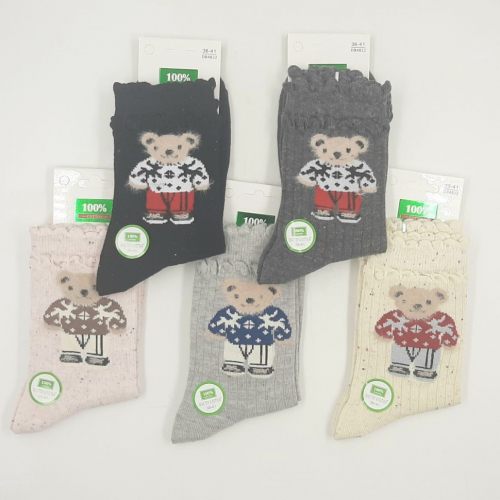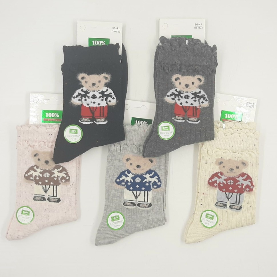 Упаковка из 10 шт МАСТЕР ХЛОПКА Носки женские Высокие Хлопок Вязаная Резинка МИШКА в свитере (36-41) (DB4822) К10