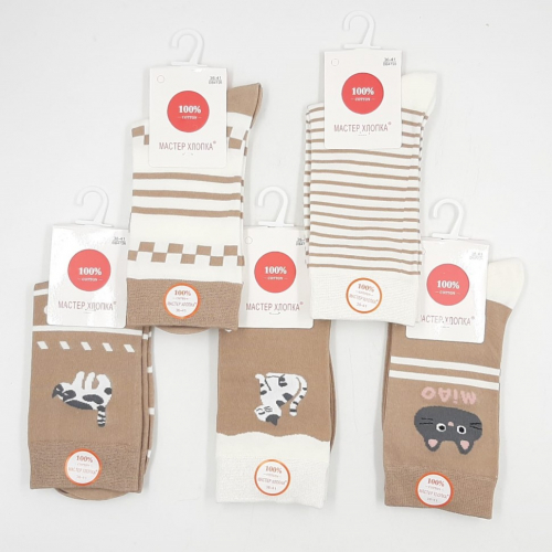 Упаковка из 10 шт МАСТЕР ХЛОПКА Носки женские Высокие Хлопок Резинка - Норка (36-41) (DB4850) К10