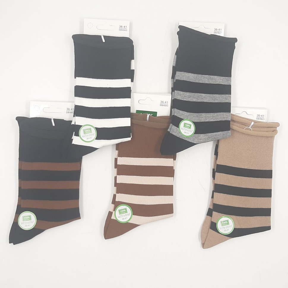 Упаковка из 10 шт МАСТЕР ХЛОПКА Носки женские Высокие Хлопок ПОЛОСКИ (коричневые) (36-41) (DB4690) К10