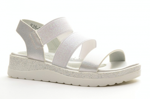 Meitesi S26-050 Сандалии бел-серебр иск кожа+текстиль, стелька нат кожа