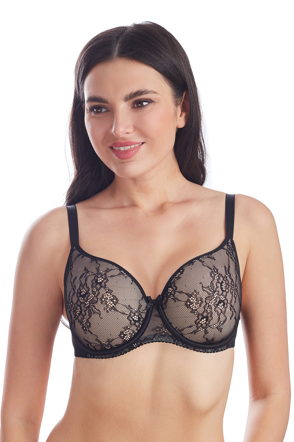 124930 MILAVITSA бюстгальтер "балконет" "мягкая чашка" на каркасах черный с нюдом