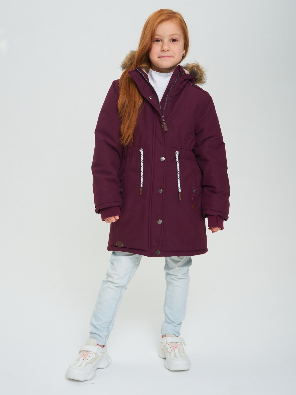 Парка зимняя подростковая для девочки бордового цвета 2490Bo