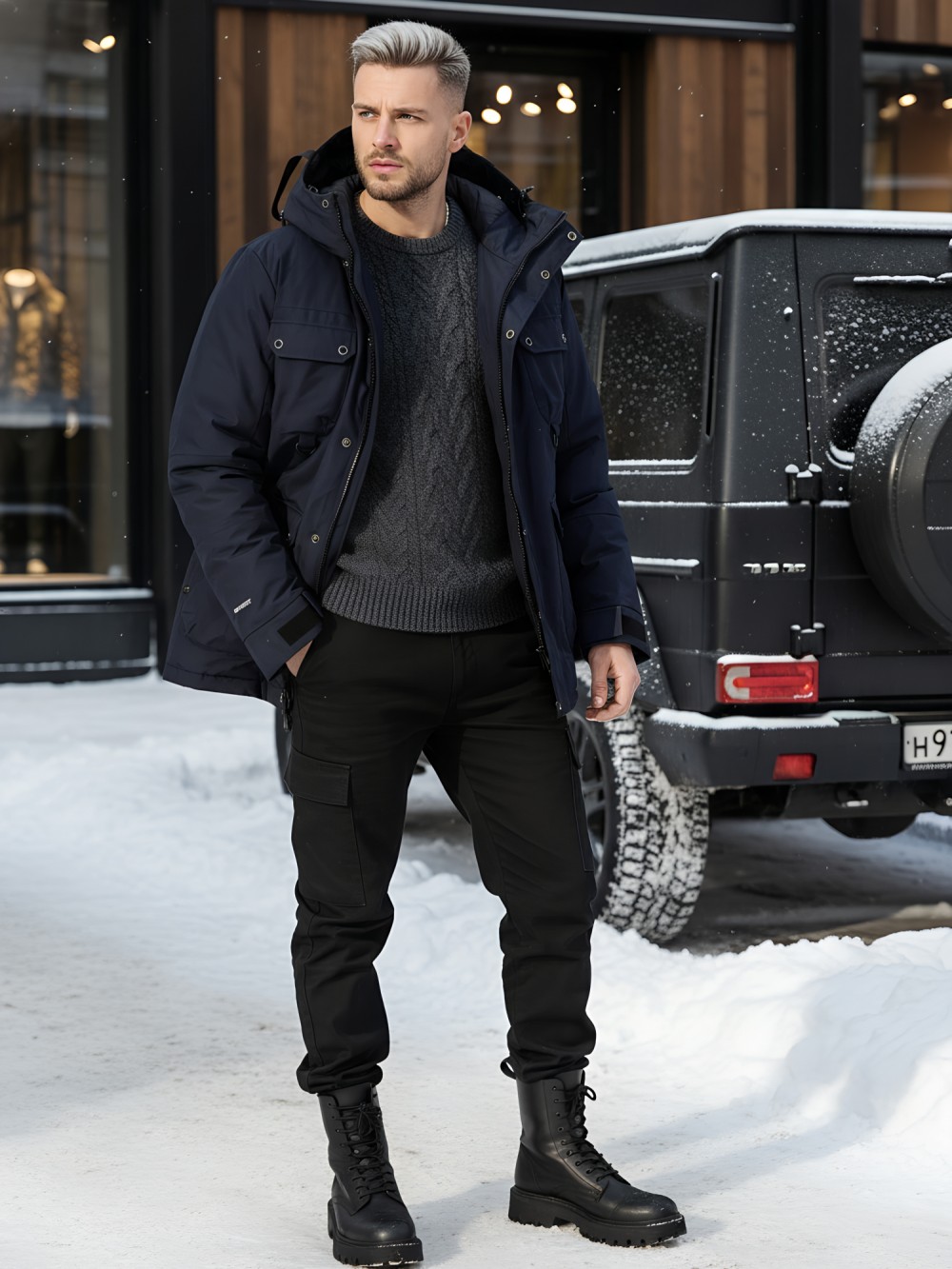 Джинсы карго мужские с накладными карманами темно-синего цвета 2421TS