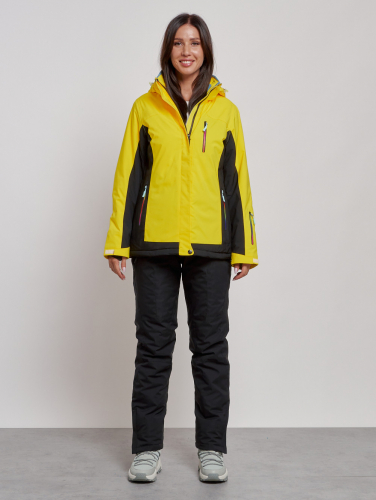 Горнолыжный костюм женский зимний желтого цвета 03327J