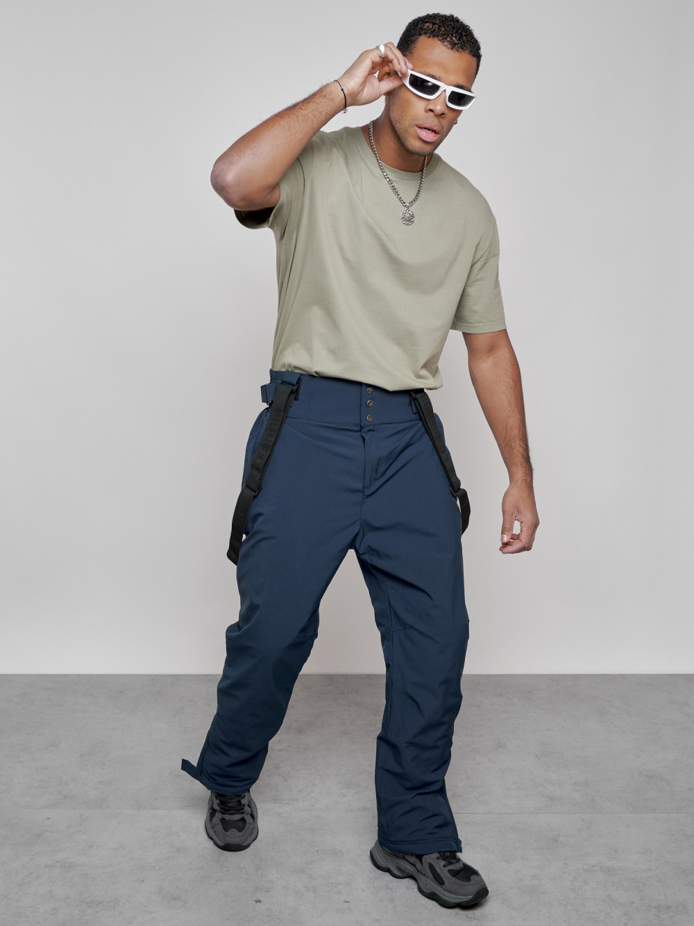 Полукомбинезон утепленный мужской зимний горнолыжный темно-синего цвета 7217TS