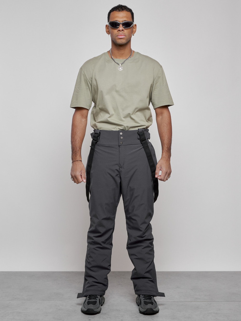 Полукомбинезон утепленный мужской зимний горнолыжный темно-серого цвета 7217TC
