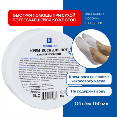 Крем-воск для ног регенерирующий +хлопковые носочки