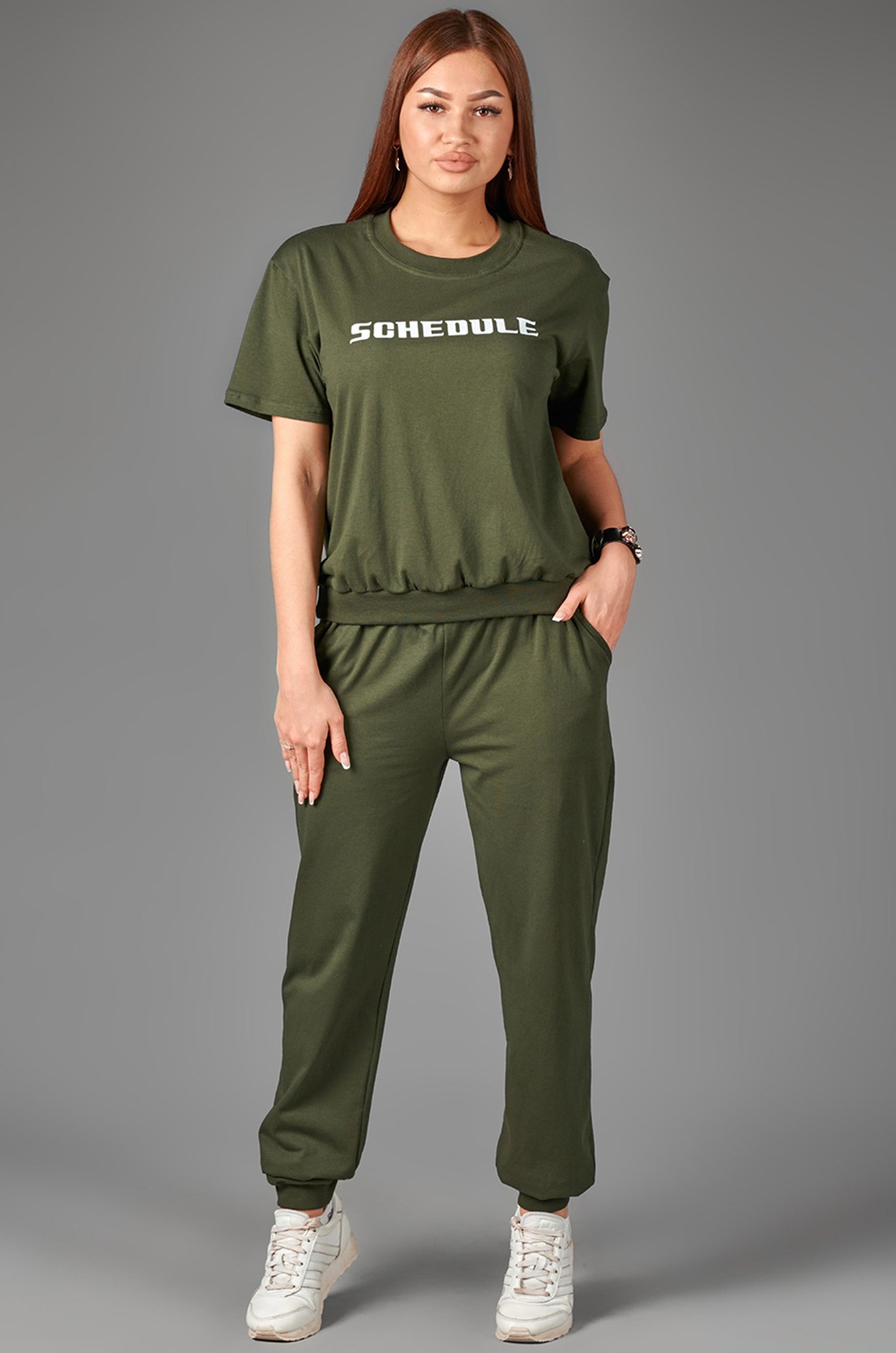 Неженка, Трикотажный костюм трендового оттенка хаки