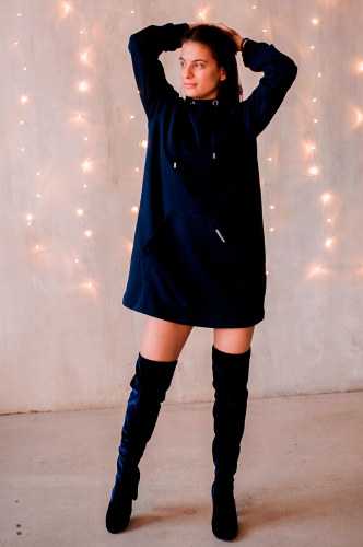 Неженка, Оригинальная женская туника синего цвета в стиле оверсайз