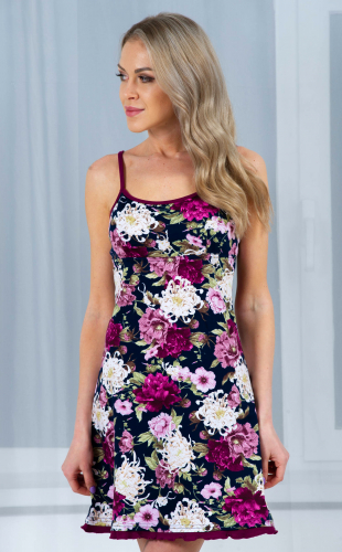 Ночная сорочка "Крупные розовые цветы на темно-синем"