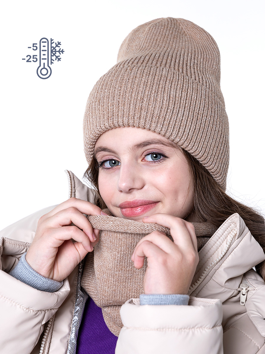 Комплект шапка и снуд 12з11823 кремовый/капучино