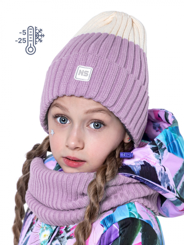Комплект шапка и снуд 12з11823 орхидея/кремовый