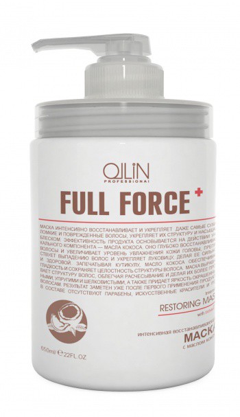 OLLIN FULL FORCE КОКОС Интенсивная восстанавливающая маска с маслом кокоса 650 мл/725775,
