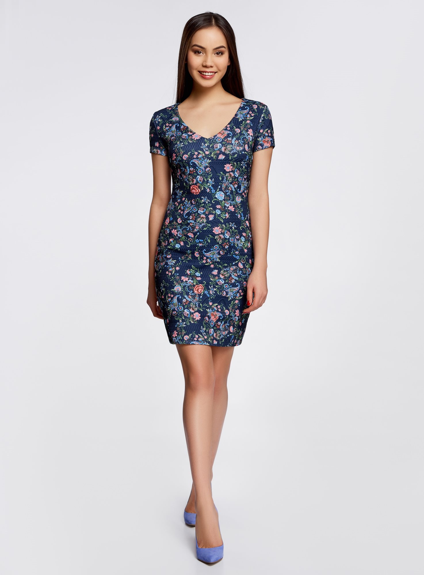 Платье из фактурной ткани с V-образным вырезом