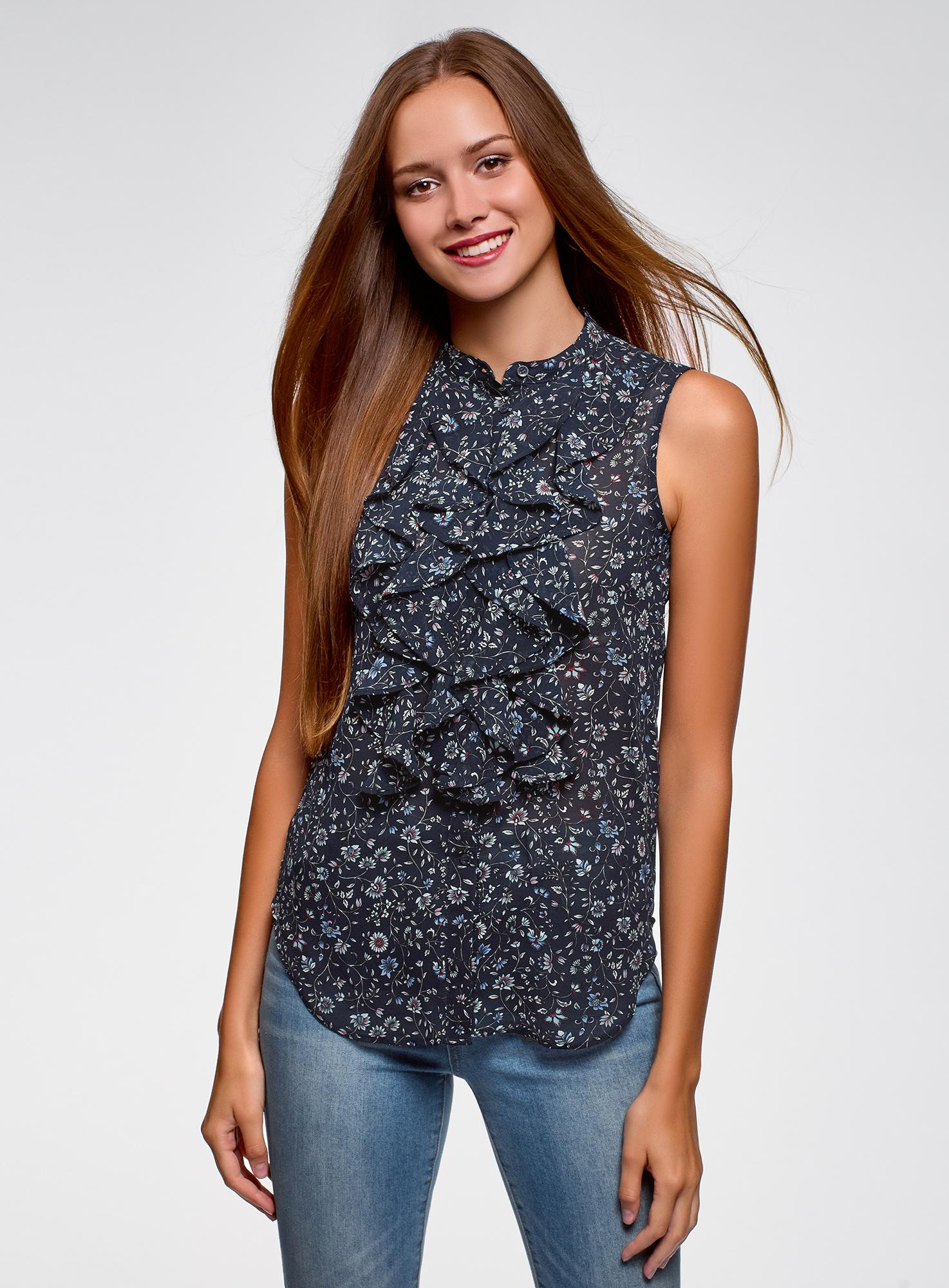 Топ из струящейся ткани с воланами