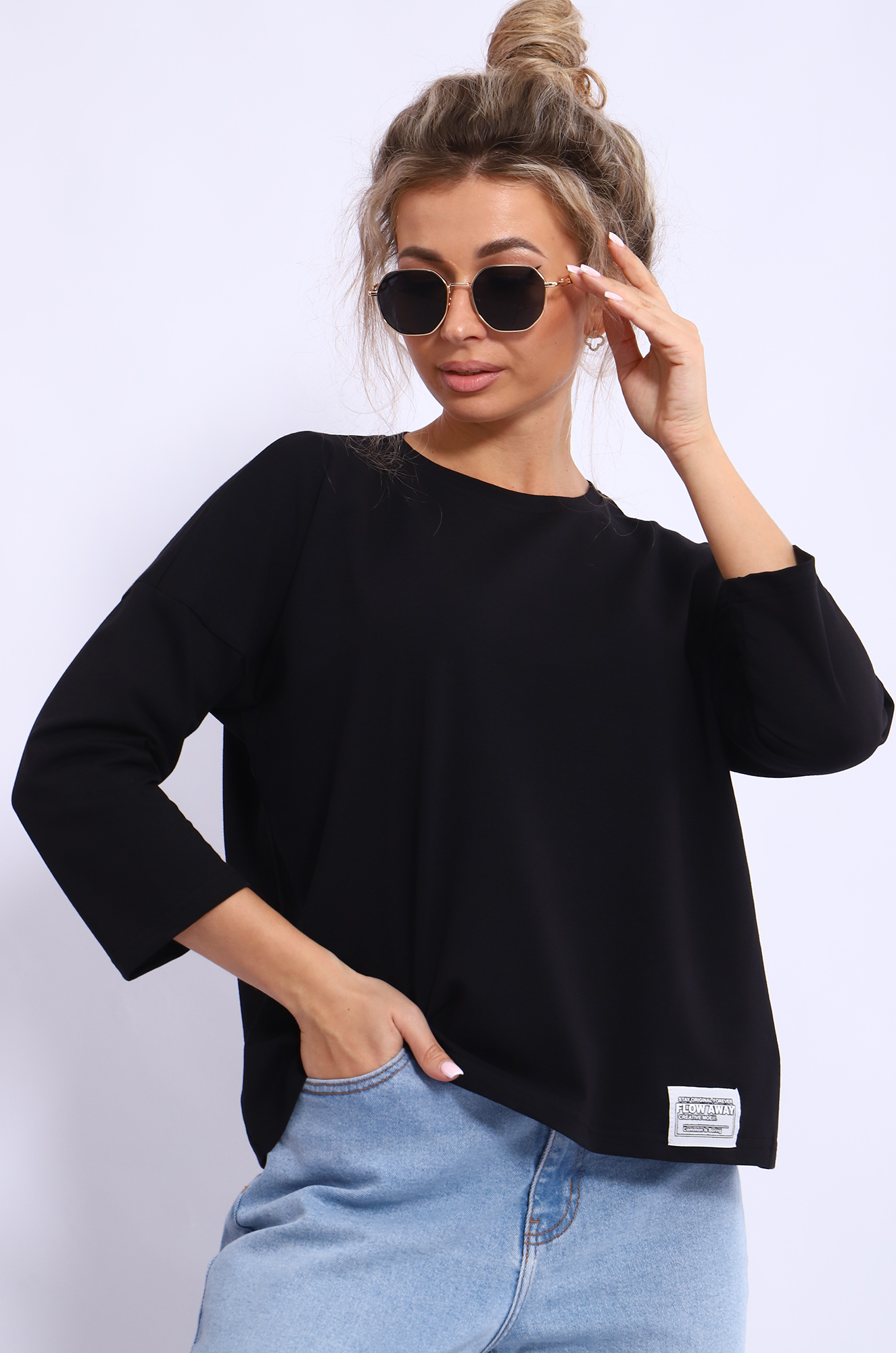 Лонгслив "Фьюжн", рукав 3/4 (черный)