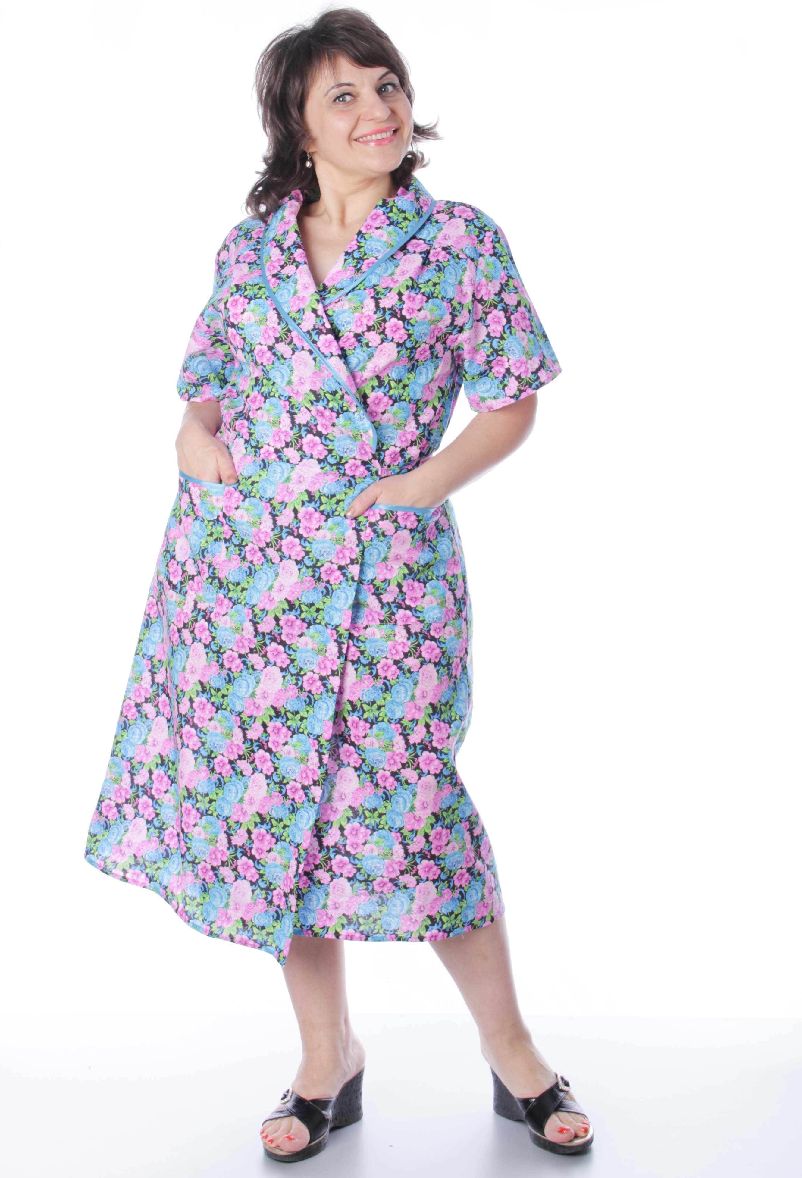 Халат на пуговицах 001, бязь (цвета в ассортименте)