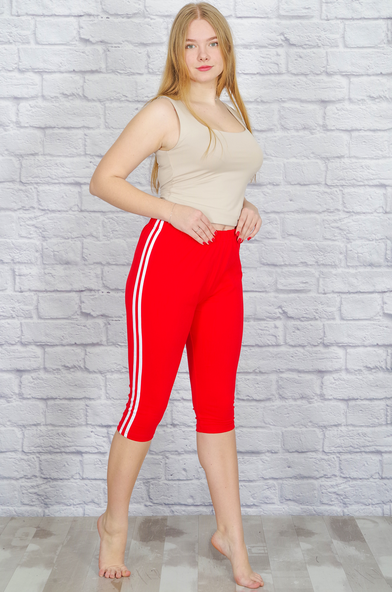Бриджи женские с лампасами, лайкра (красный)
