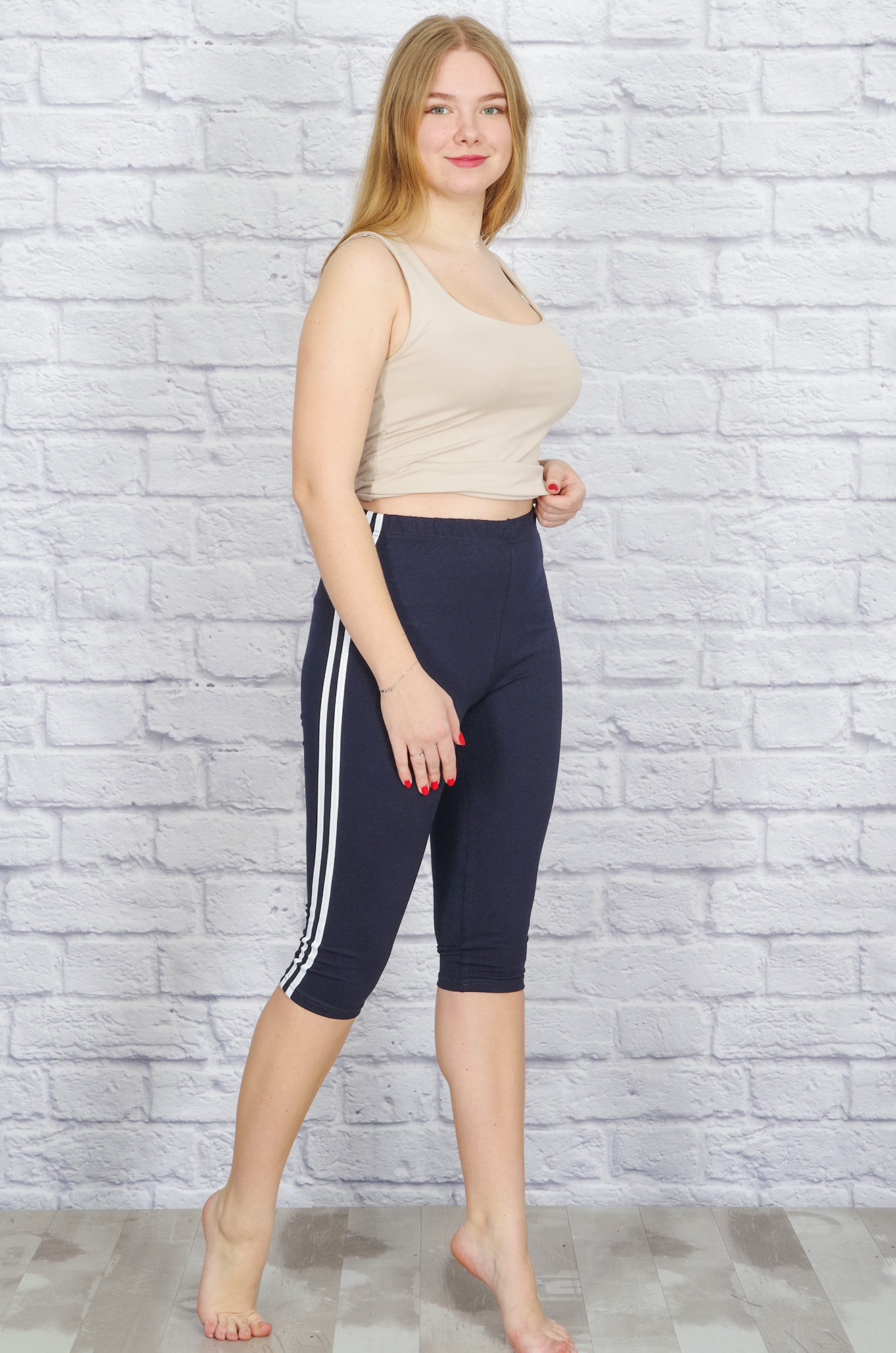 Бриджи женские с лампасами, лайкра (синий)