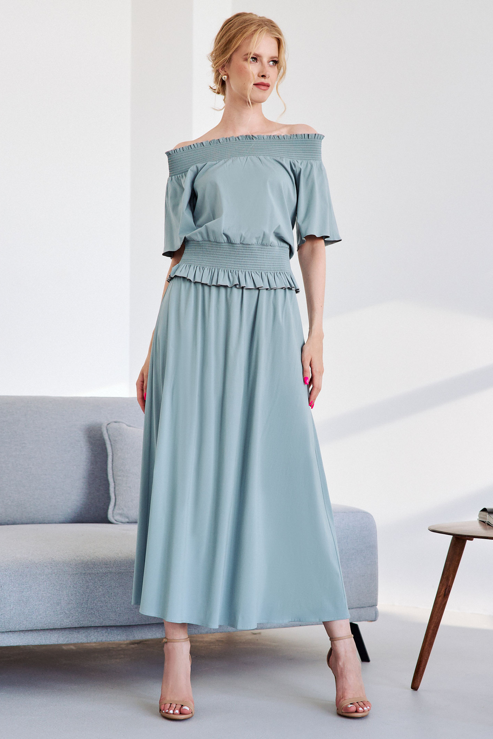 Комплект женский (блузка, юбка) 83710w (Бирюзовый)