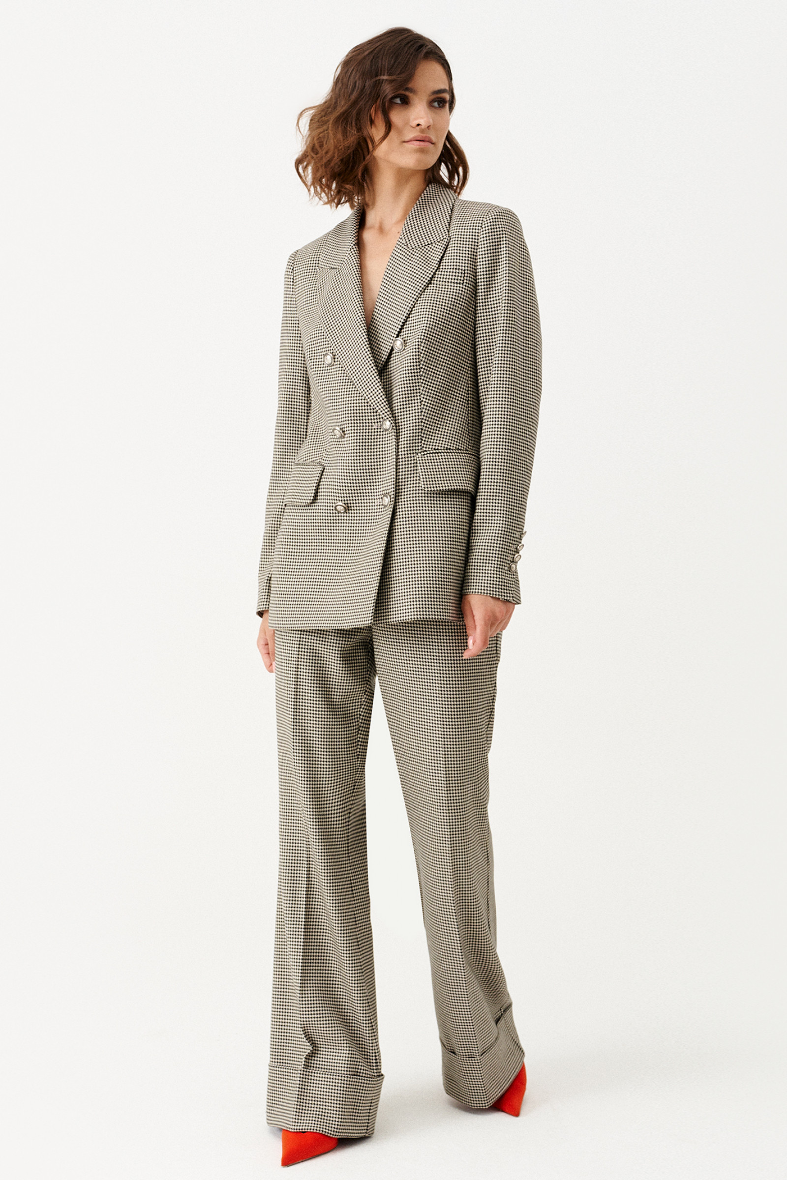 Женский костюм (жакет, брюки) 155320w (Черно-бежевый)