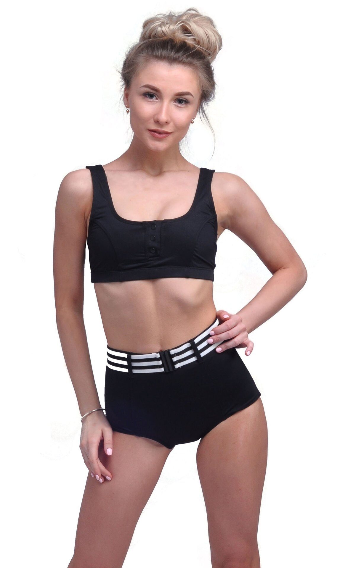 202034 Купальник молодёжный топ с кнопками+ шорты спортивные ЧЕРН