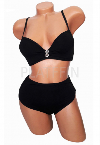 181123 Купальник раздельный однотонный "Бюст эффект" ЧЕРН