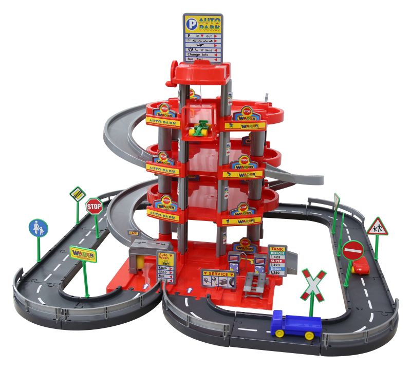 Паркинг 4-уровневый "Autopark" с дорогой и автомобилями, красный (в коробке)
