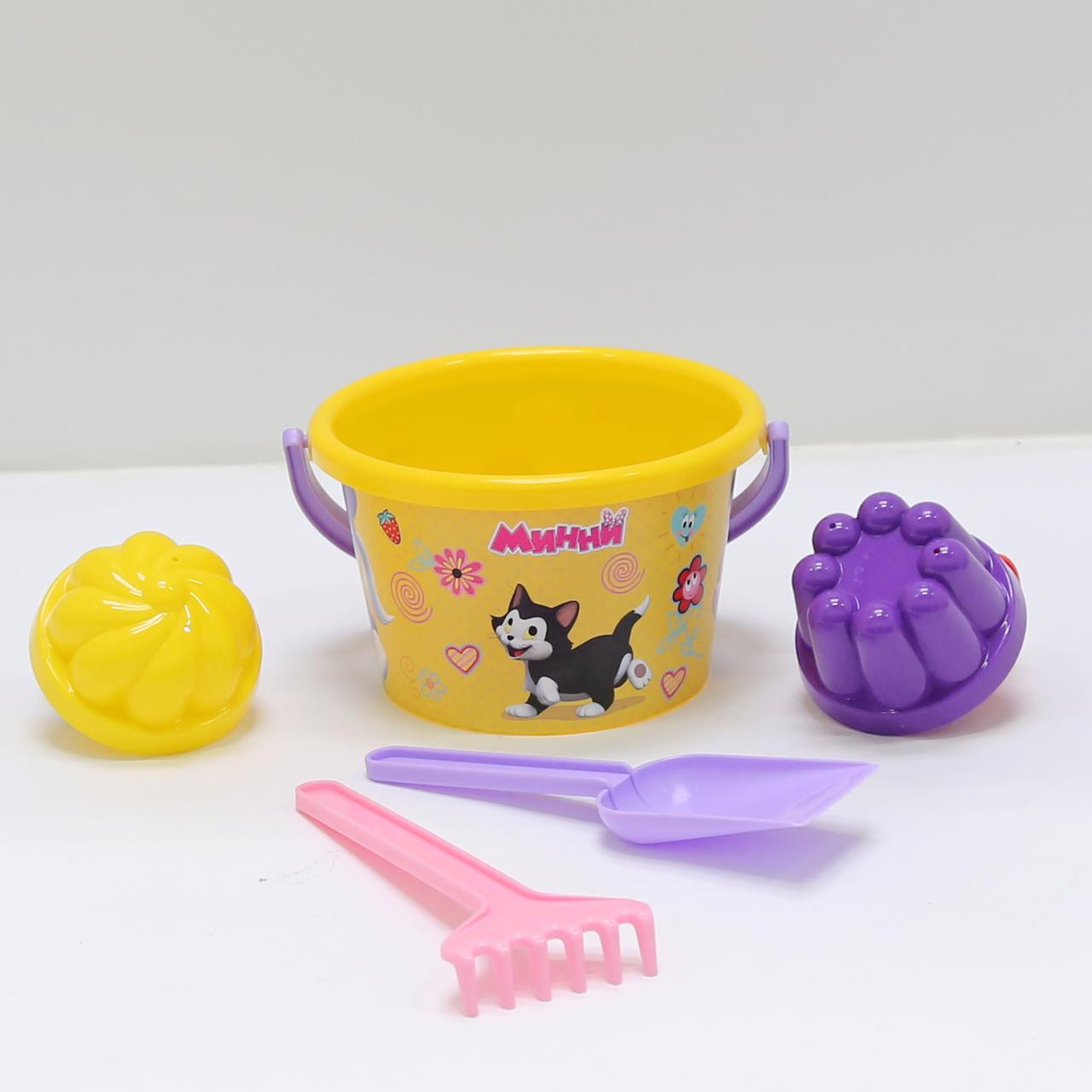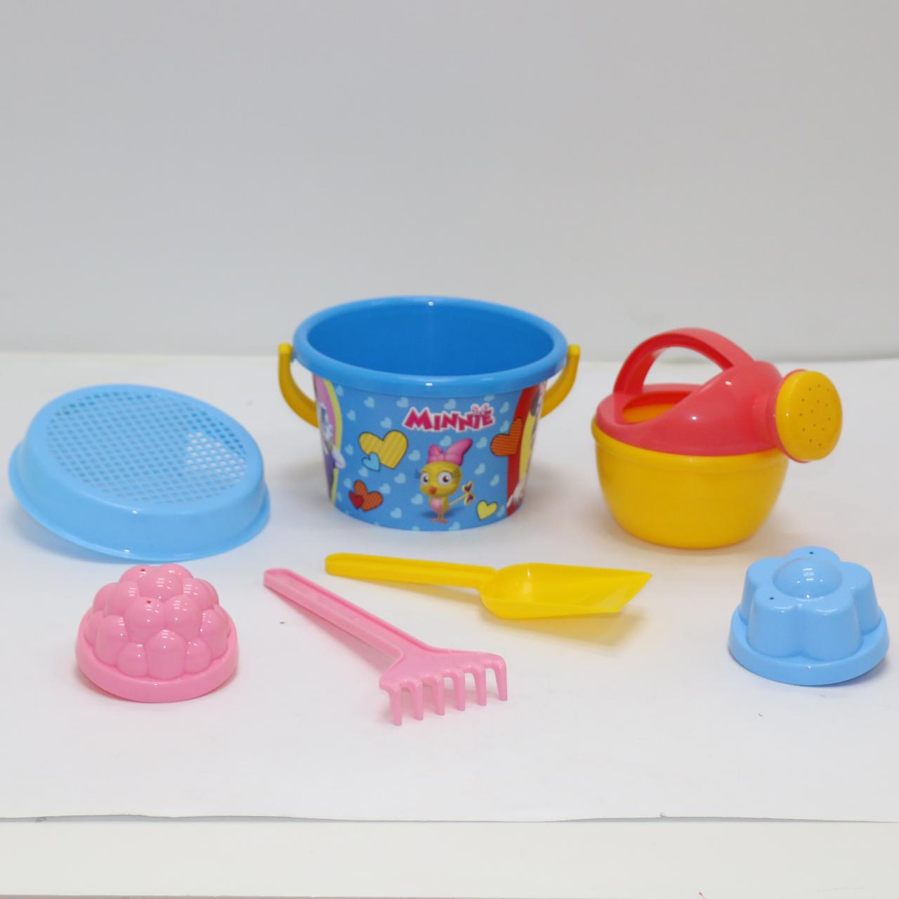 Набор Disney «Минни» №7: ведро среднее с наклейкой, лопатка, грабельки, 2 формочки
