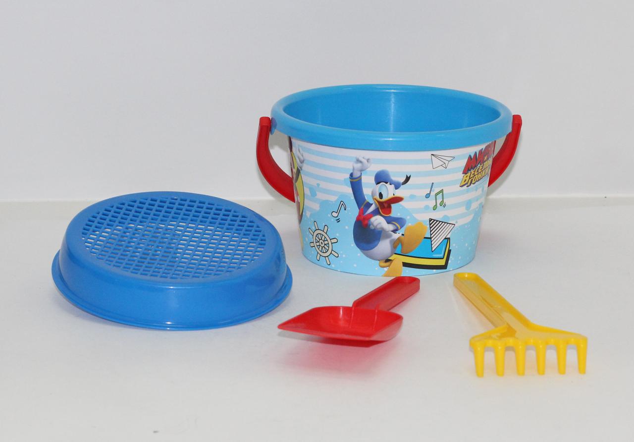 Набор Disney «Микки и Весёлые гонки» №6: ведро среднее с наклейкой, ситечко, лопатка, грабельки