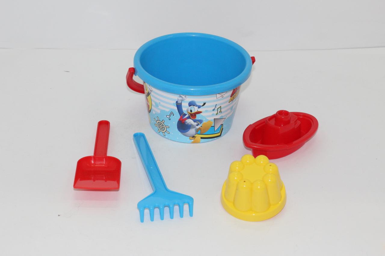 Набор Disney «Микки и Весёлые гонки» №7: ведро среднее с наклейкой, лопатка, грабельки, 1 формочка, кораблик "Юнга"