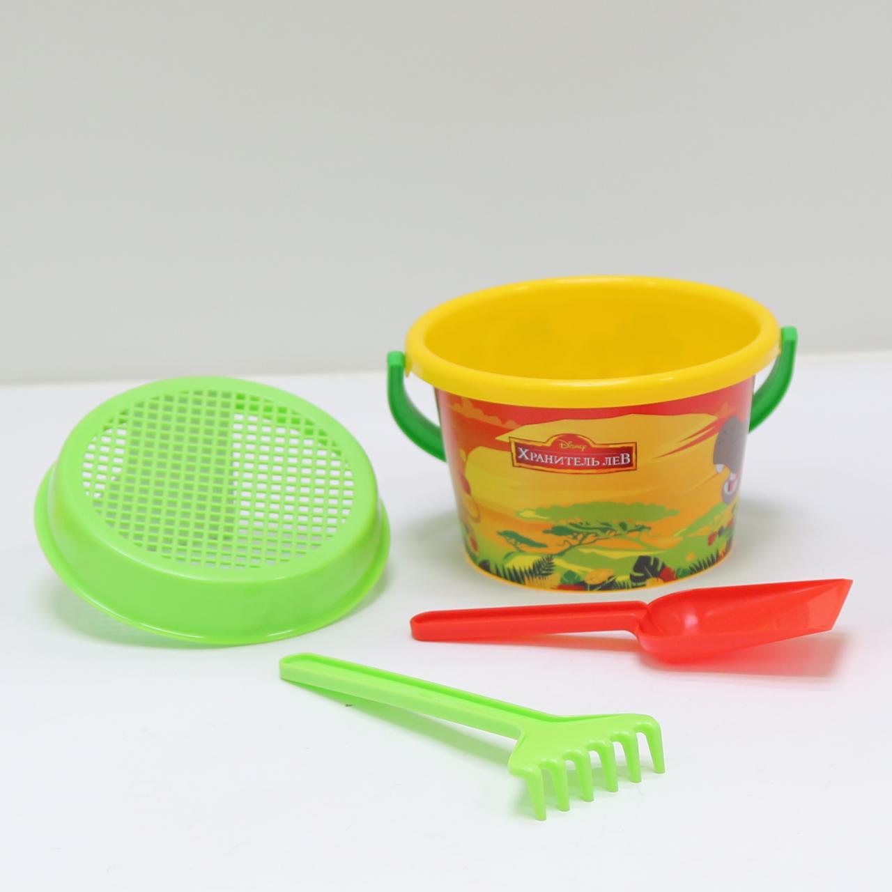 Набор Disney «Хранитель Лев» №5: ведро среднее с наклейкой, ситечко, лопатка, грабельки
