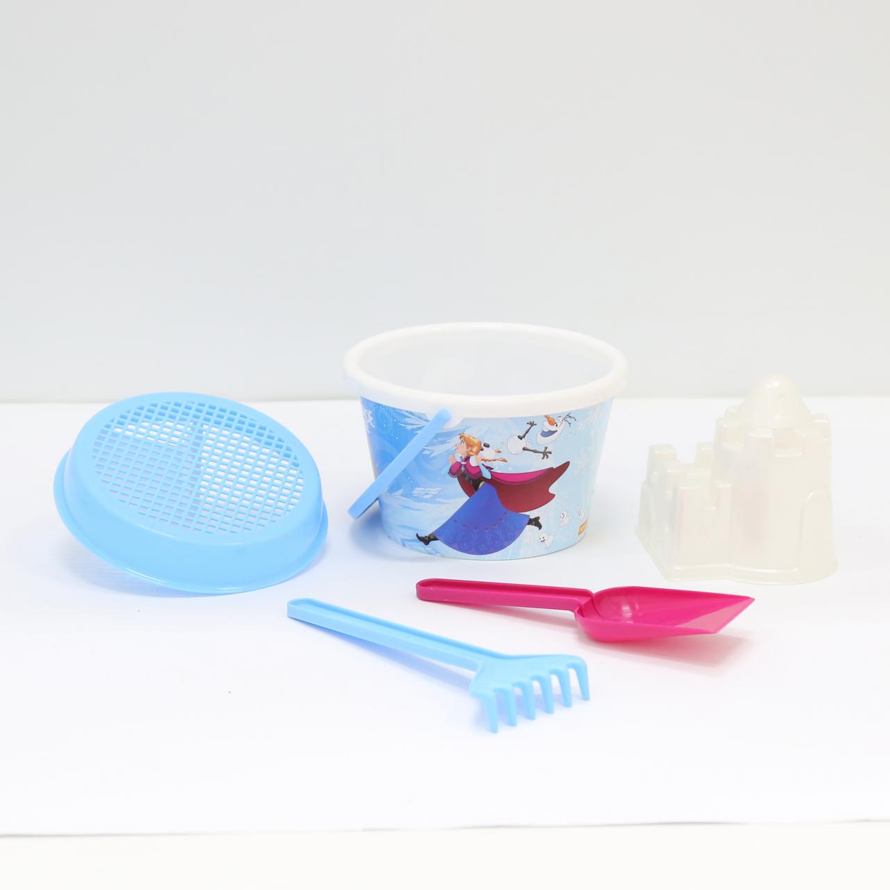 Набор Disney «Холодное сердце» №7: ведро среднее с наклейкой, ситечко, лопатка, грабельки, формочка (замок квадратный)