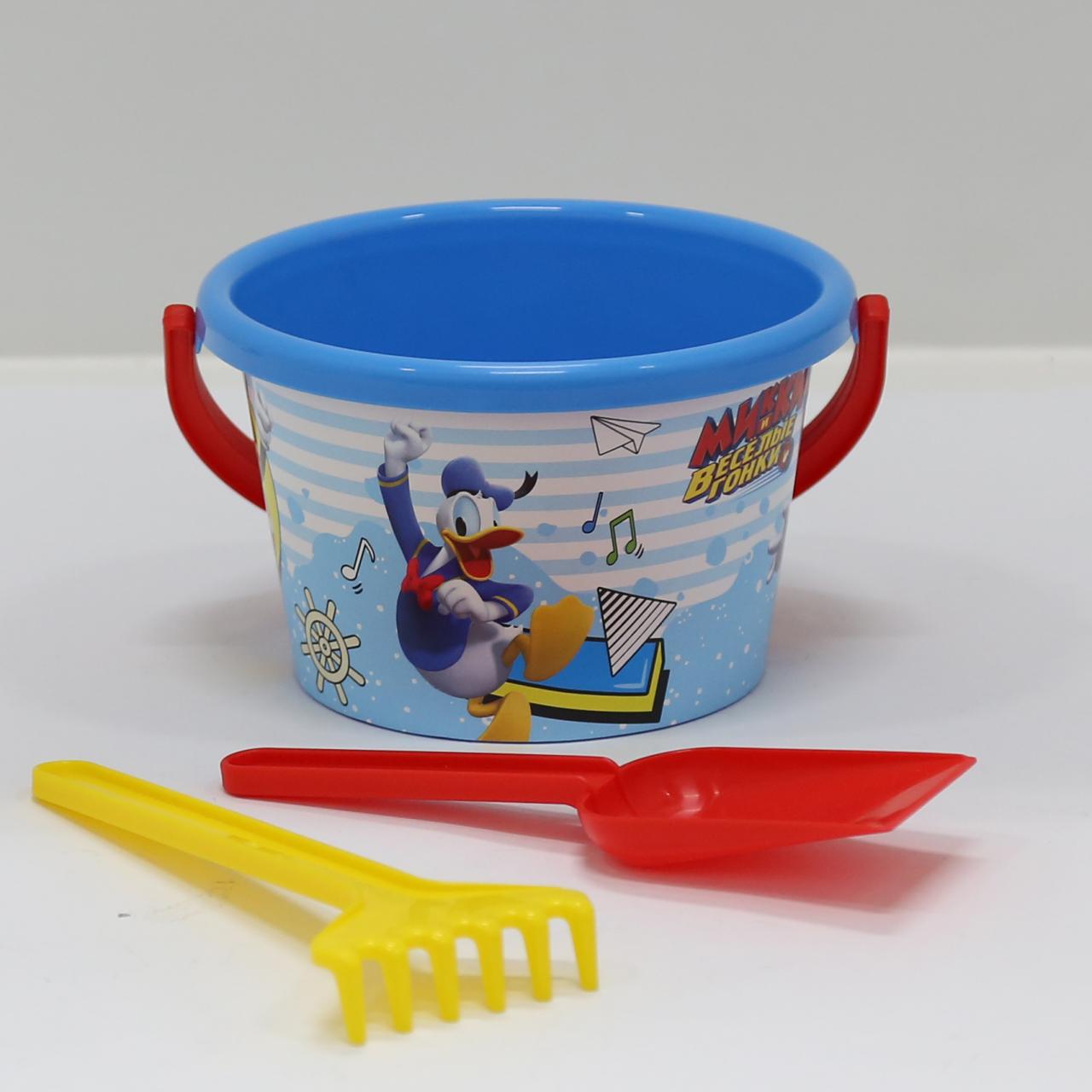Набор Disney «Микки и Весёлые гонки» №5: ведро среднее с наклейкой, лопатка, грабельки