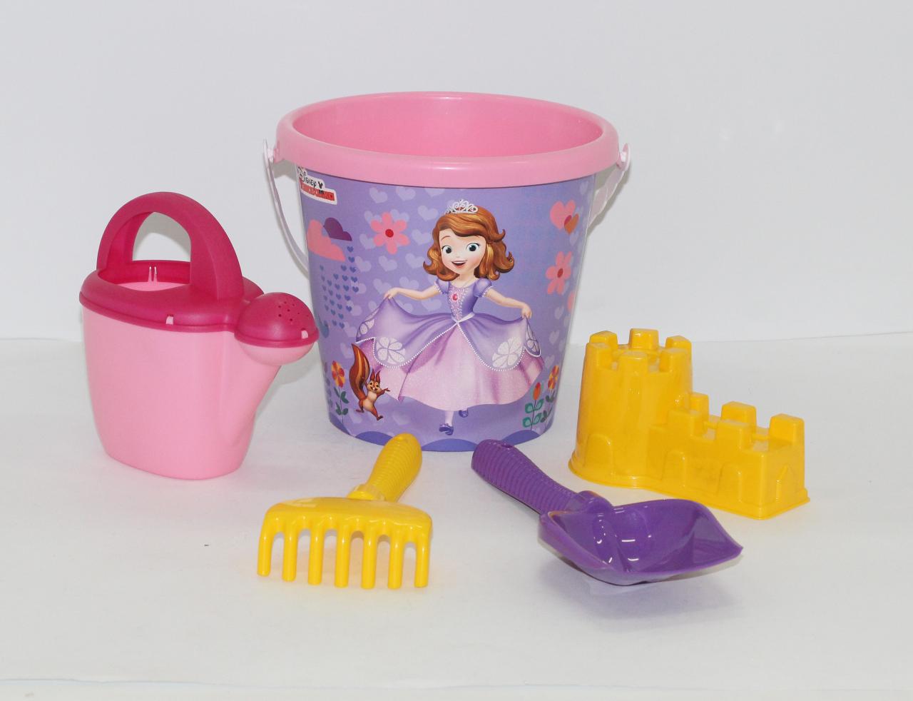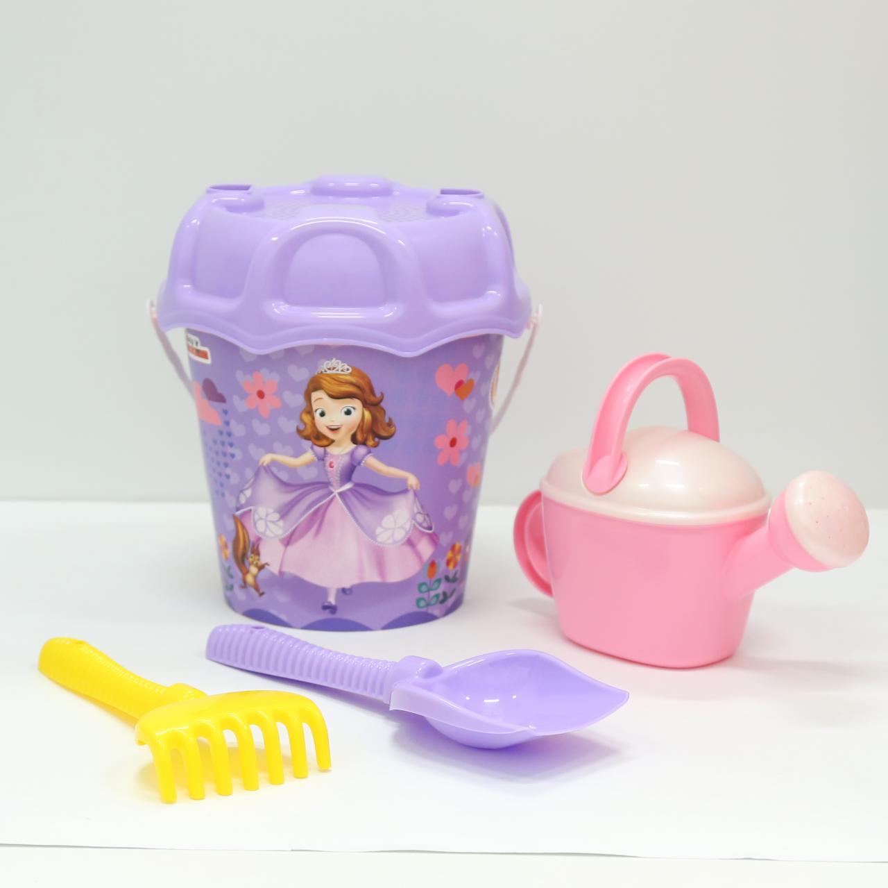 Набор Disney «София Прекрасная» №3: ведро большое с наклейкой, ситечко большое №3, лопата №6, грабли №6, лейка №8