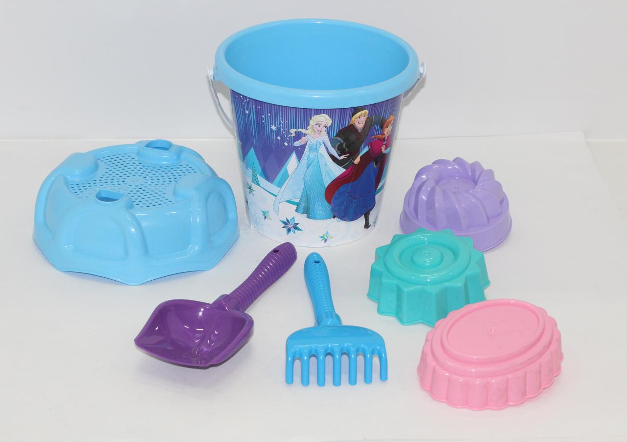Набор Disney «Холодное сердце» №14: ведро большое с наклейкой, ситечко большое №3, лопата №6, грабли №6, формочки "Пирожные" 3 шт