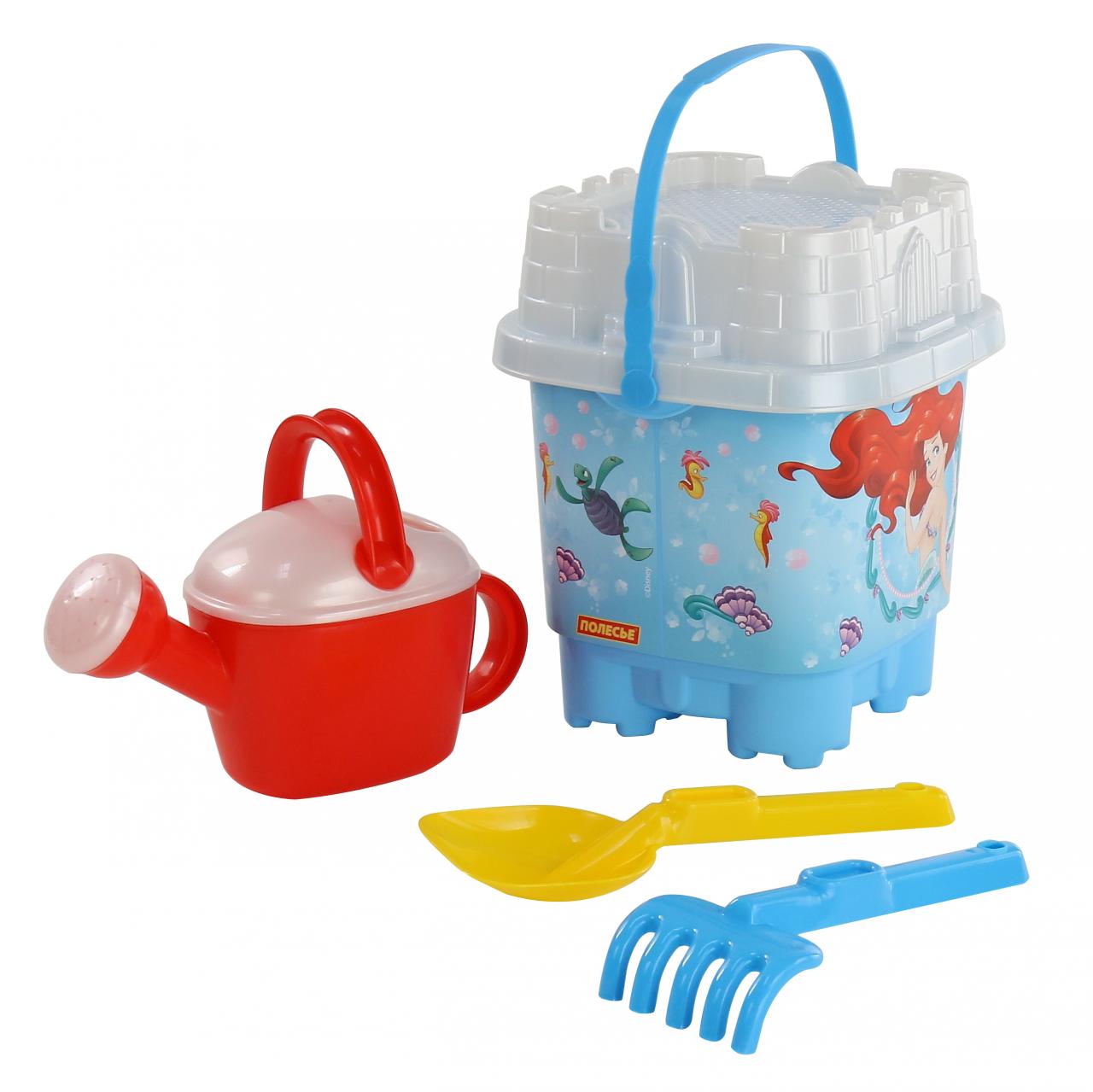 Набор Disney «Русалочка» №10: ведро-замок большое с наклейкой, ситечко-замок большое, лопатка №32, грабельки №32, лейка №8