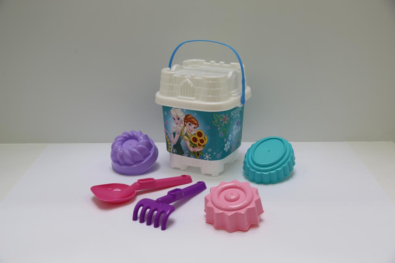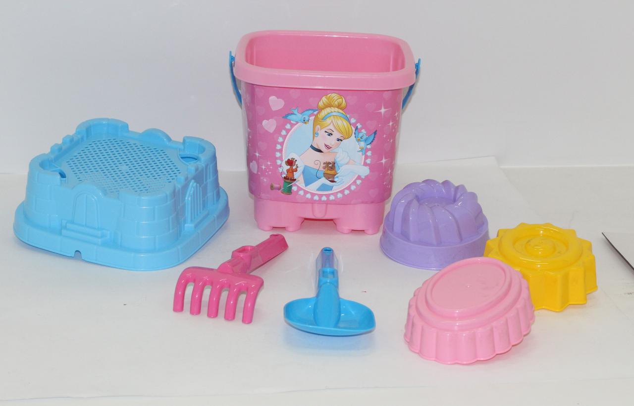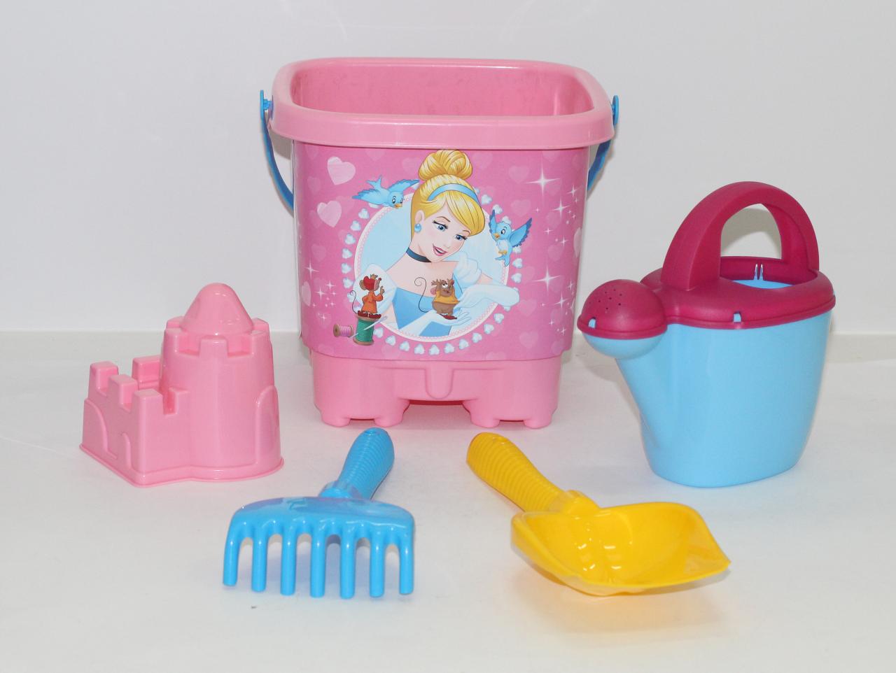 Набор Disney «Принцесса» №16: ведро-замок большое с наклейкой, лопата №6, грабли №6, формочка (замок квадратный), лейка №10