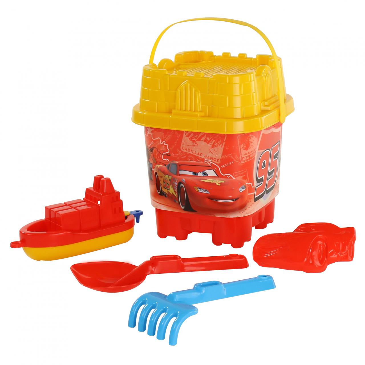 Набор Disney/Pixar «Тачки» №32: ведро-замок большое с наклейкой, ситечко-замок большое, лопатка №32, грабельки №32, формочка (Молния Маккуин), кораблик