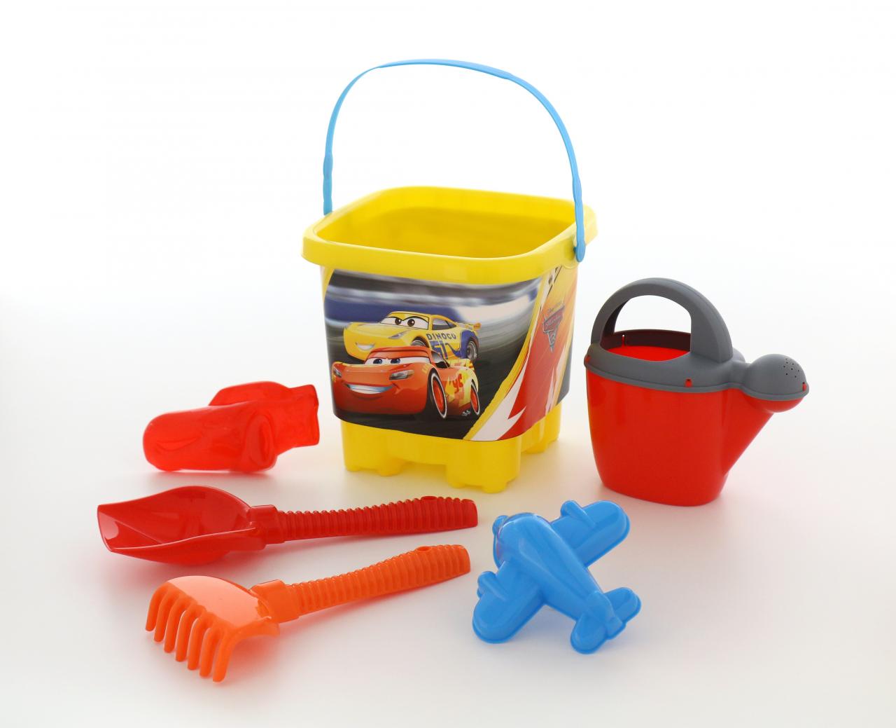 Набор Disney/Pixar «Тачки» №33: ведро-замок большое с наклейкой, ситечко-замок большое, лопатка №32, грабельки №32, лейка №8