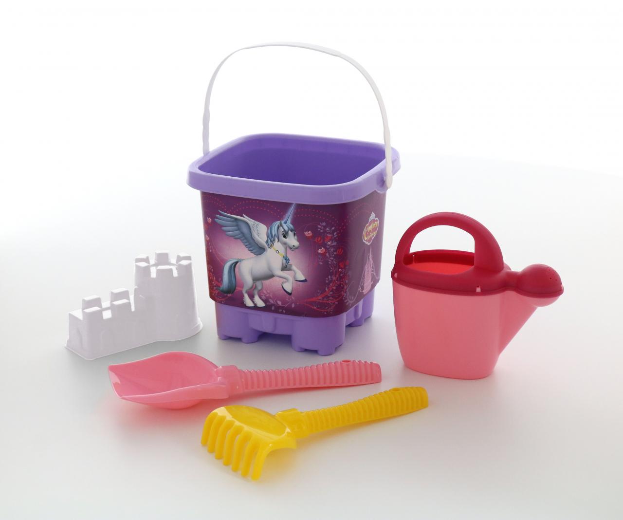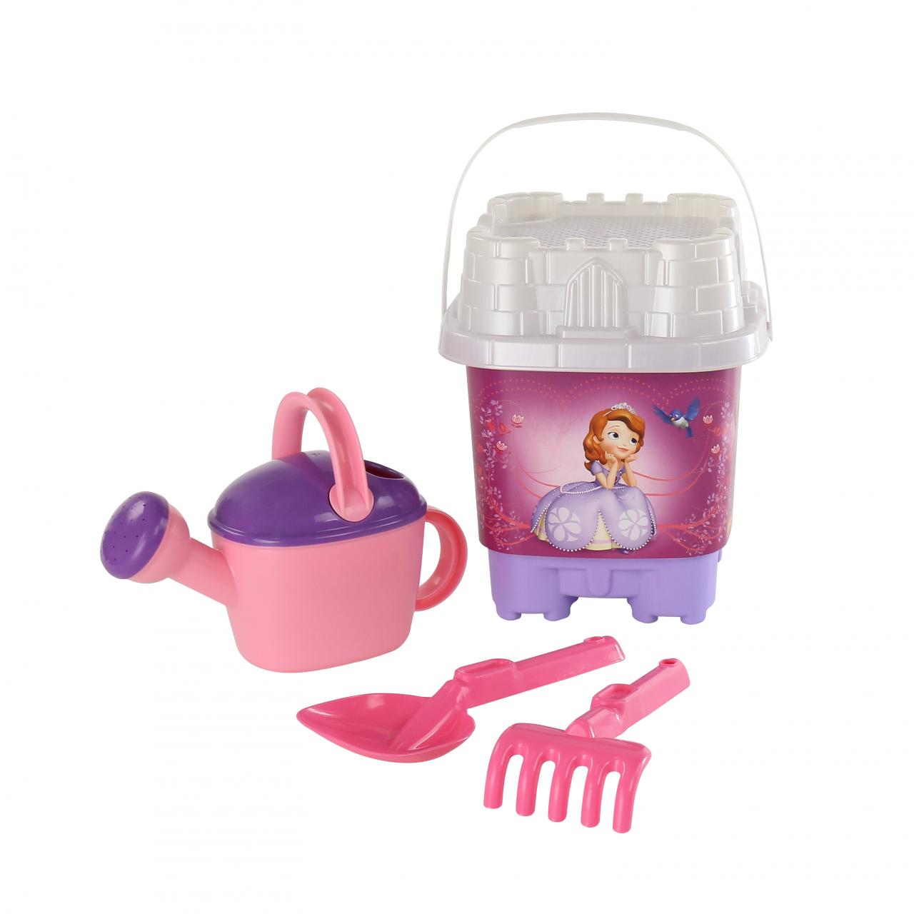 Набор Disney «София Прекрасная» №4: ведро-замок большое с наклейкой, лопата №6, грабли №6, формочка (замок мост), лейка №10