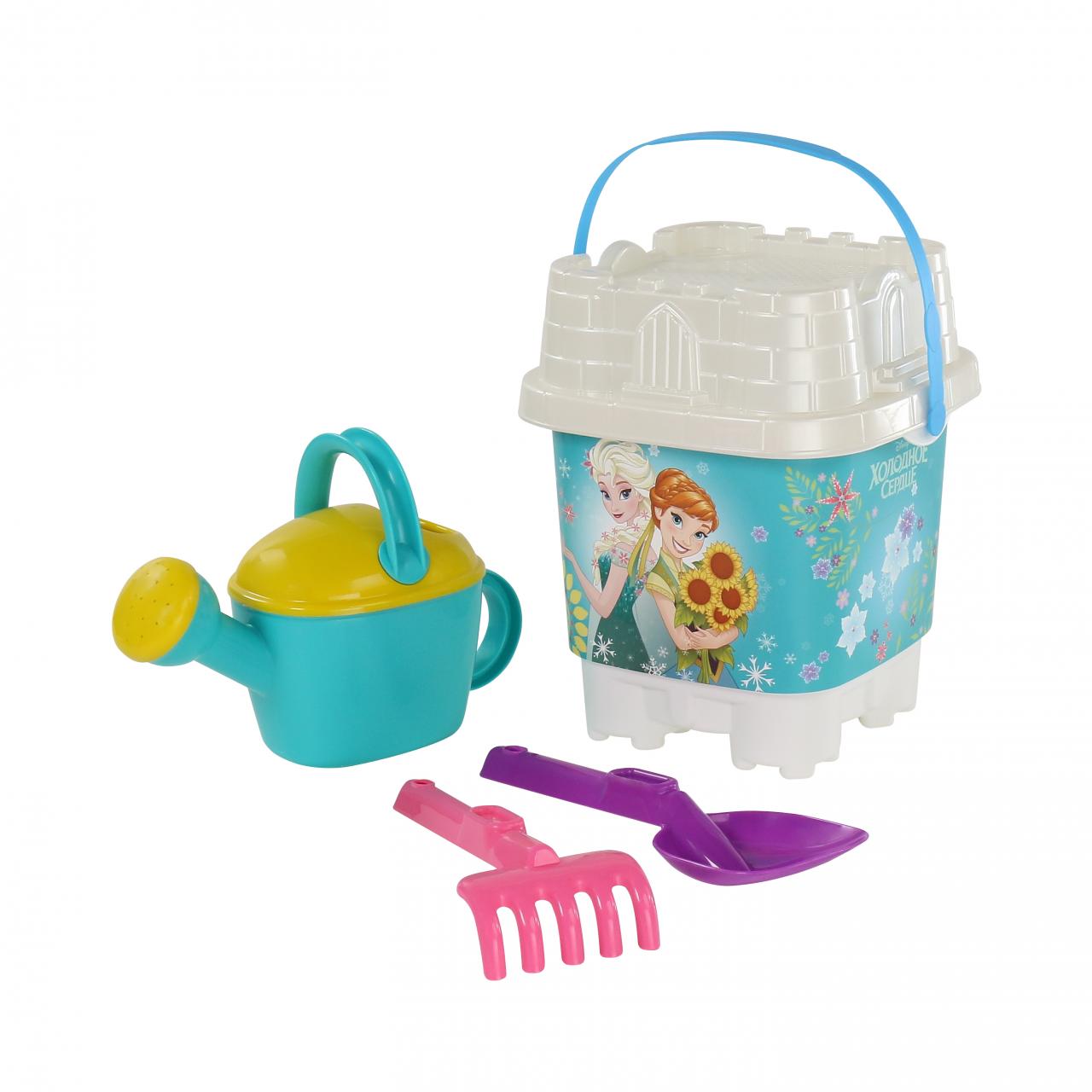 Набор Disney «Холодное сердце» №18: ведро-замок большое с наклейкой, ситечко-замок большое, лопатка №32, грабельки №32, лейка №8