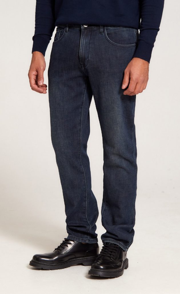 Джинсы мужские утепленные флисом P121-0152W d.blue